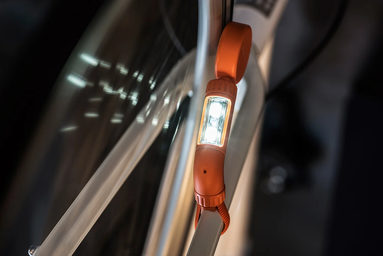 NEO represents a new typology amongst bike lights. NEO is shaped to not interfere with standard brake and lock systems, providing optimal clearance and orientation to the rim. It attaches to the frame on one end and cantilevers out from the other to be powered by the rotating rim.